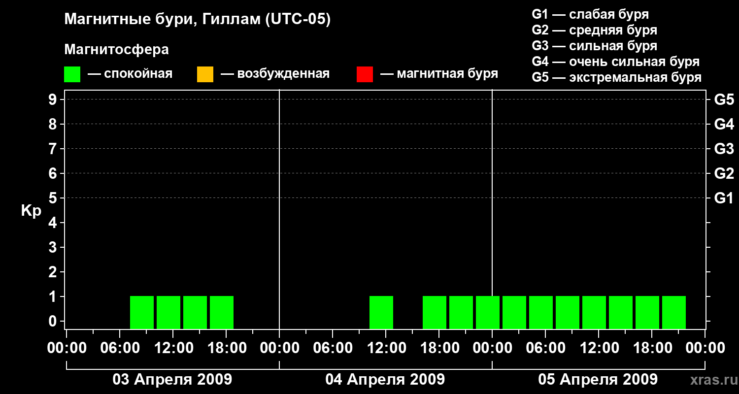 Магнитные бури в Гилламе — 5 апреля 2009 года