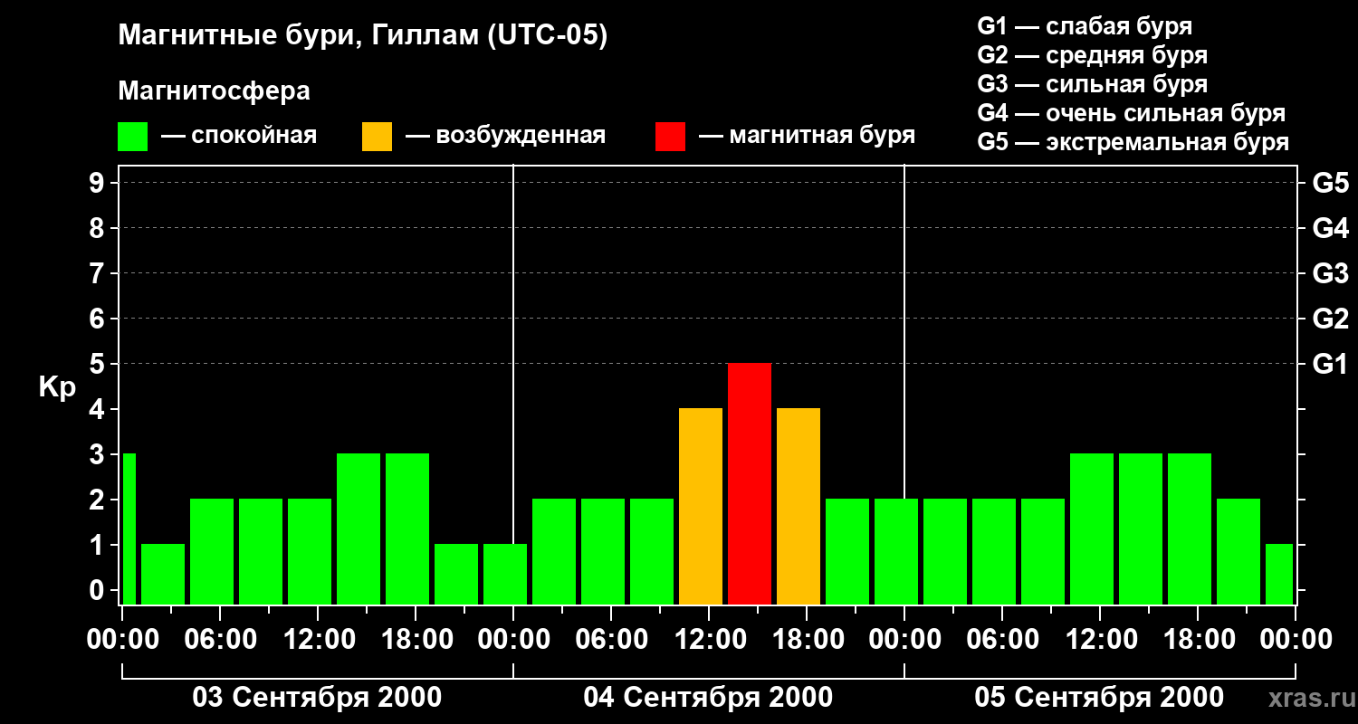 Магнитные бури в Гилламе 5 сентября 2000 года