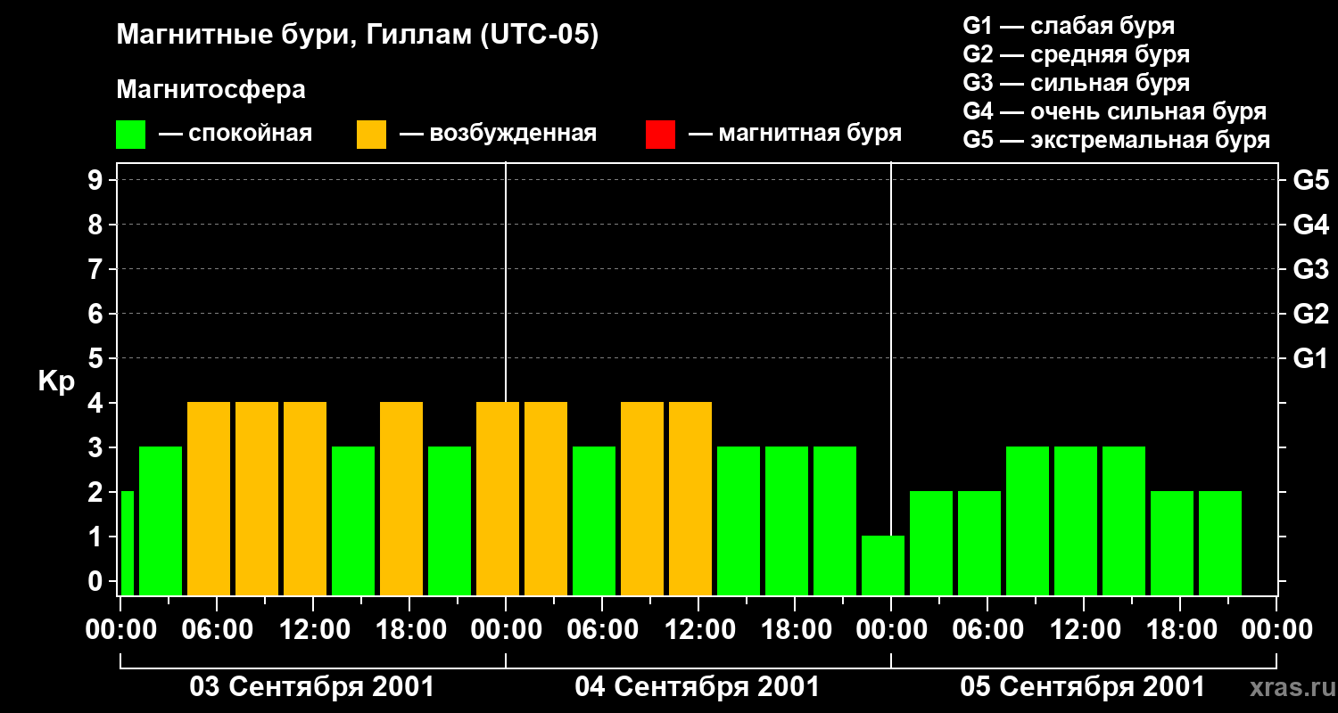 Магнитные бури в Гилламе 5 сентября 2001 года