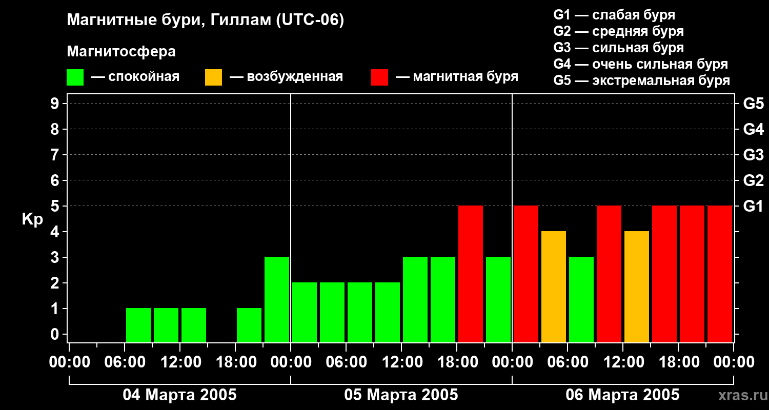 Магнитные бури в Гилламе — 6 марта 2005 года