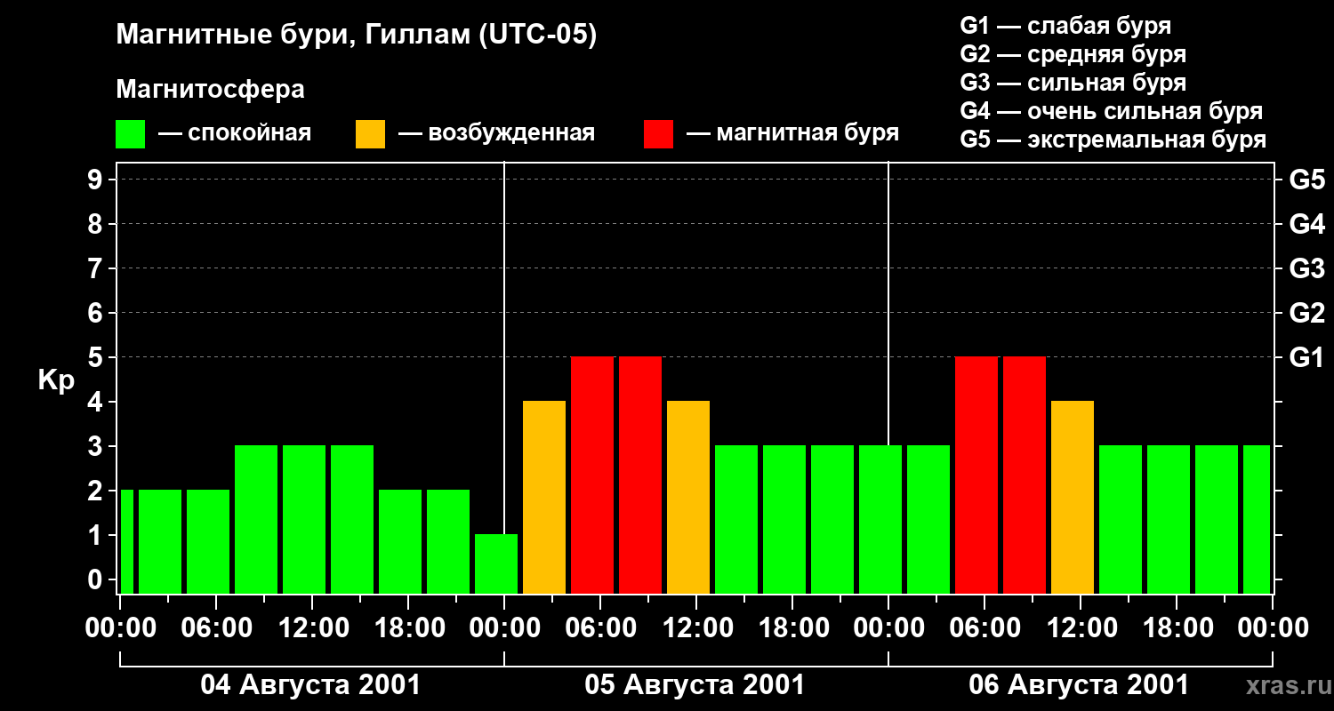 Магнитные бури в Гилламе — 6 августа 2001 года