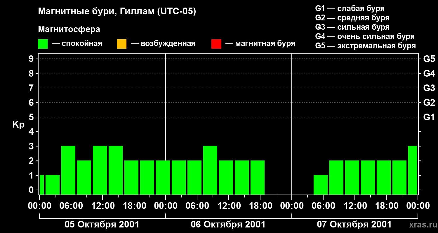 Магнитные бури в Гилламе 7 октября 2001 года
