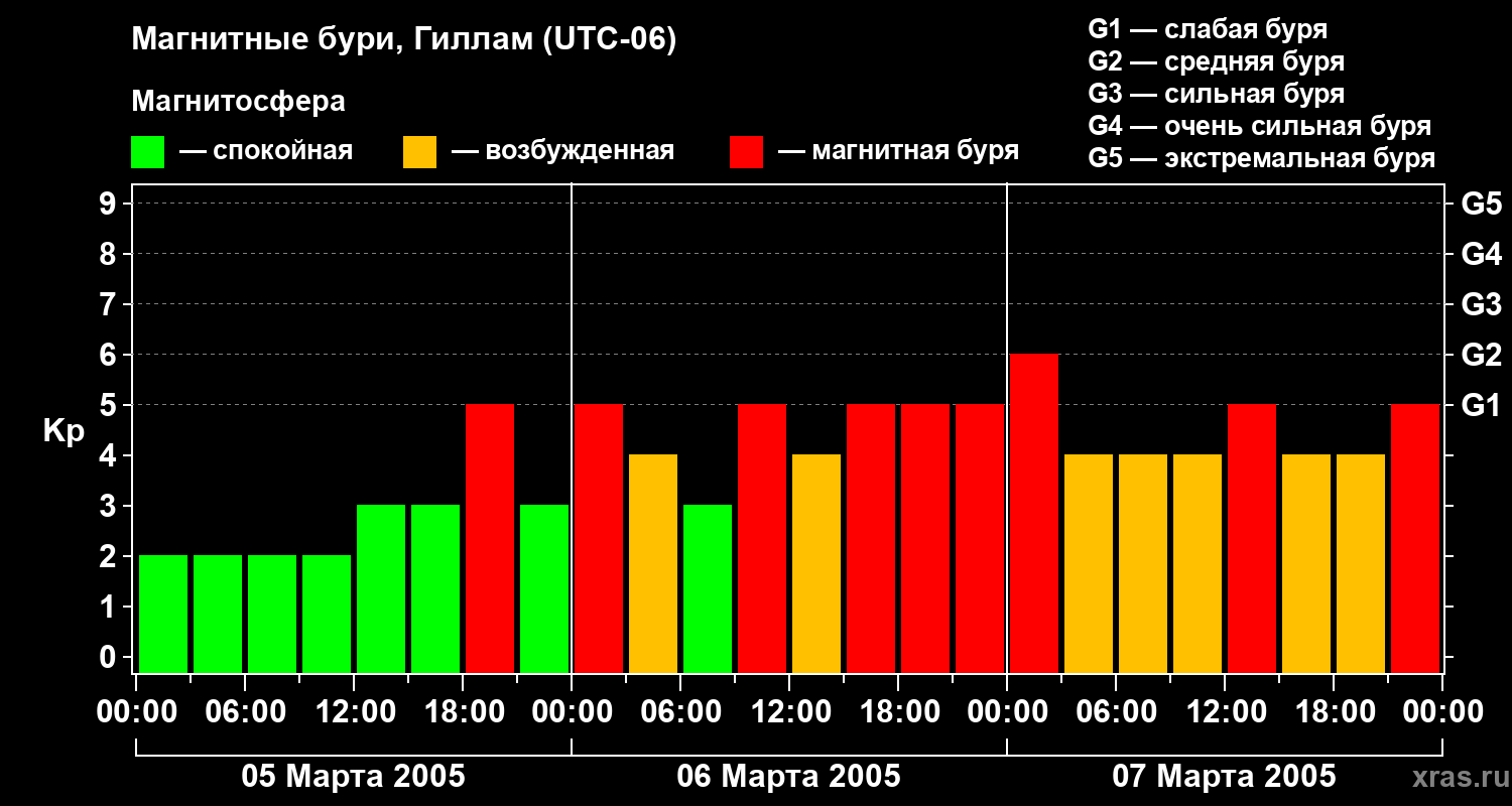 Магнитные бури в Гилламе — 7 марта 2005 года