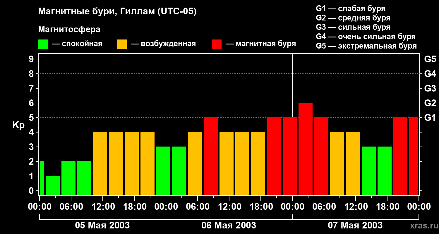 Магнитные бури в Гилламе в мае 2003 года
