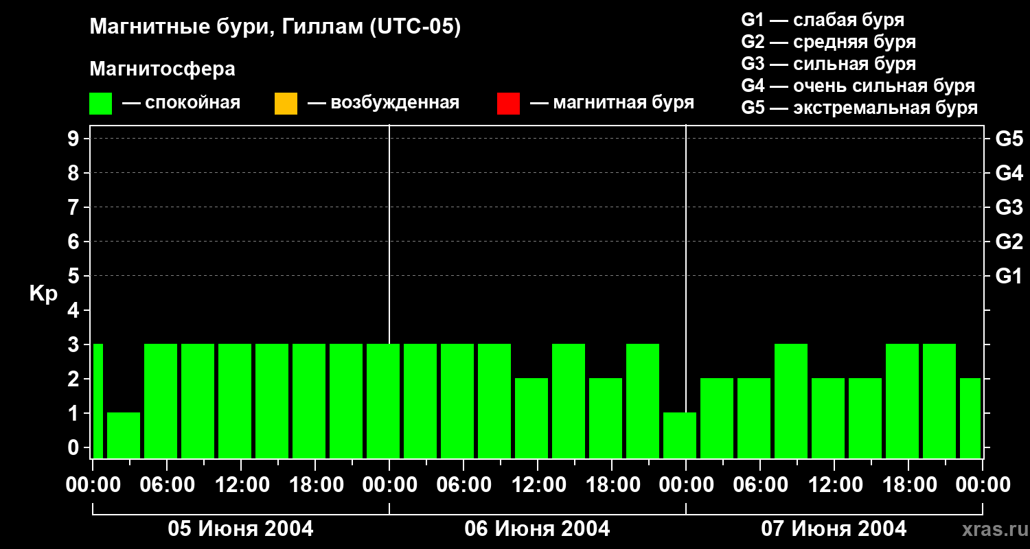 Магнитные бури в Гилламе 7 июня 2004 года
