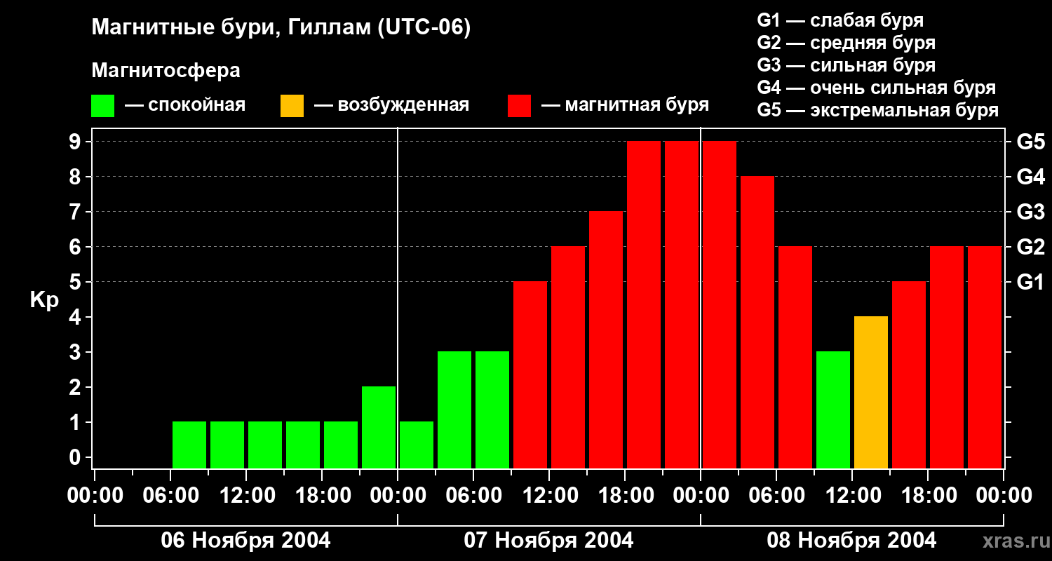 Магнитные бури в Гилламе — 8 ноября 2004 года