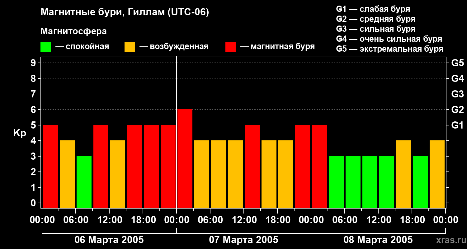 Магнитные бури в Гилламе в марте 2005 года