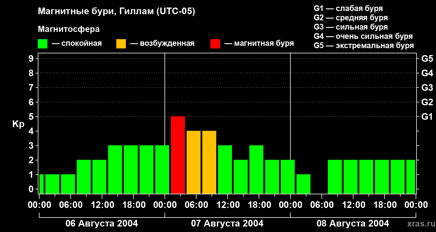 Магнитные бури в Гилламе — 8 августа 2004 года