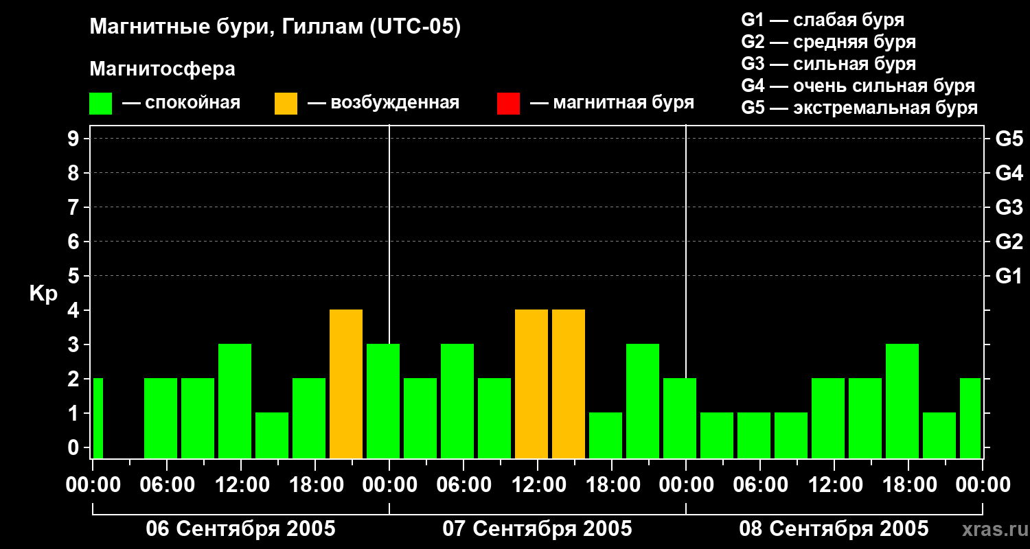 Магнитные бури в Гилламе 8 сентября 2005 года