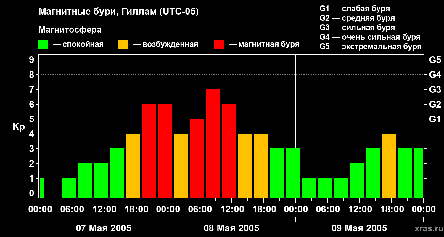Магнитные бури в Гилламе — 9 мая 2005 года