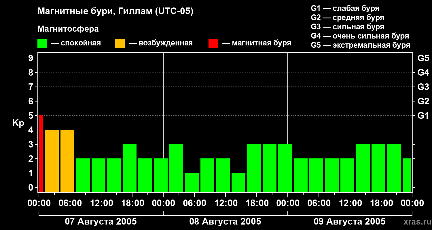 Магнитные бури в Гилламе — 9 августа 2005 года