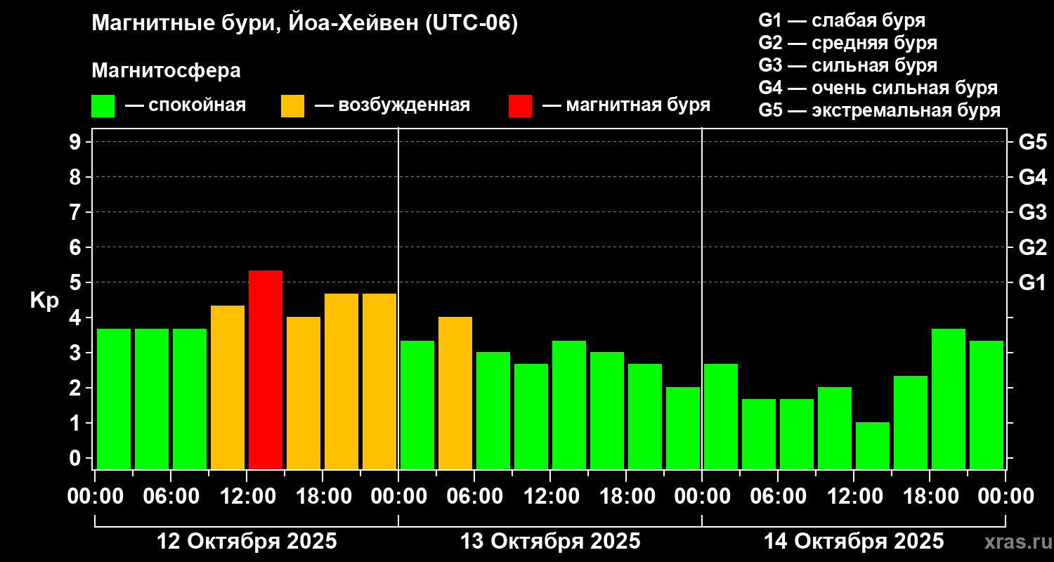 Магнитные бури в Йоа-Хейвене 14 октября 2025 года