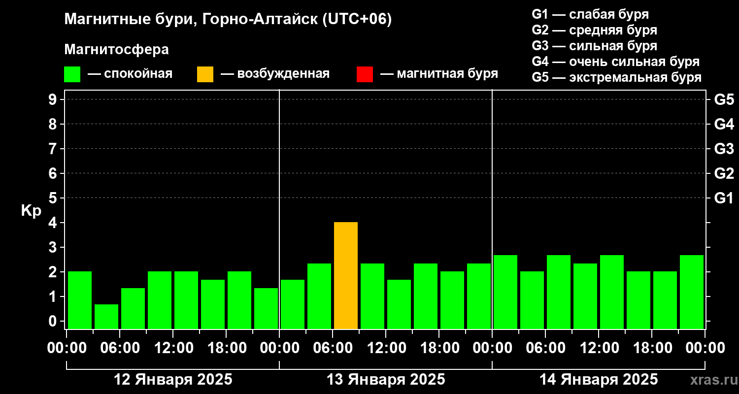 Магнитные бури в Горно-Алтайске — 14 января 2025 года