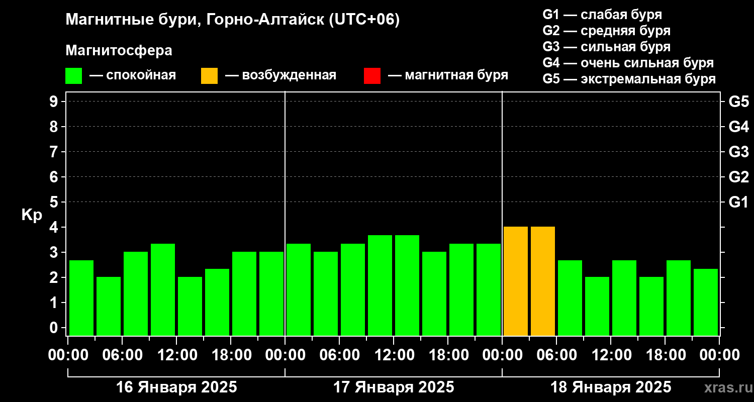 Магнитные бури в Горно-Алтайске — 18 января 2025 года