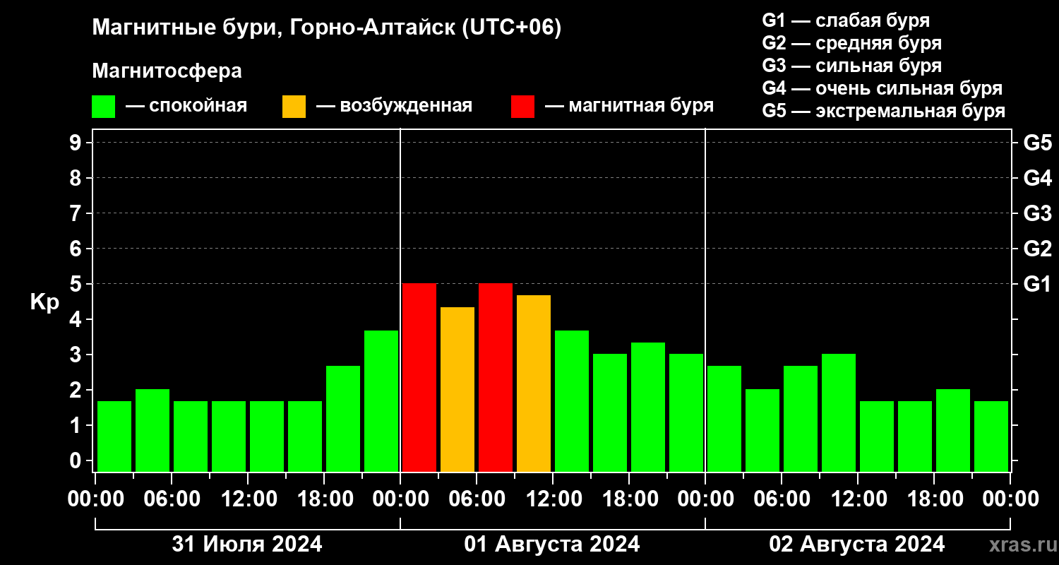 Магнитные бури в Горно-Алтайске — 2 августа 2024 года