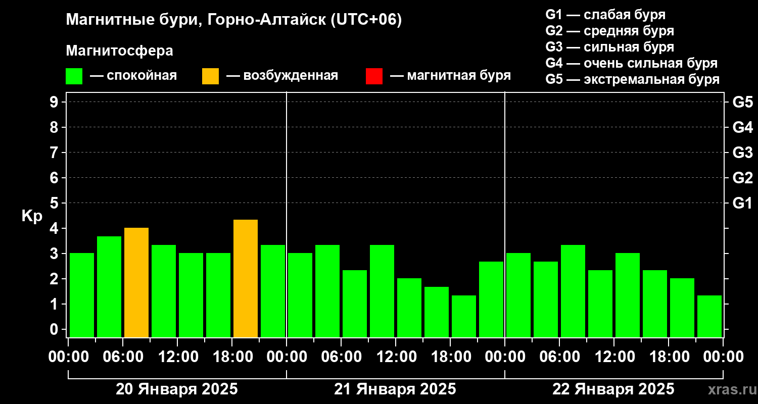Магнитные бури в Горно-Алтайске — 22 января 2025 года