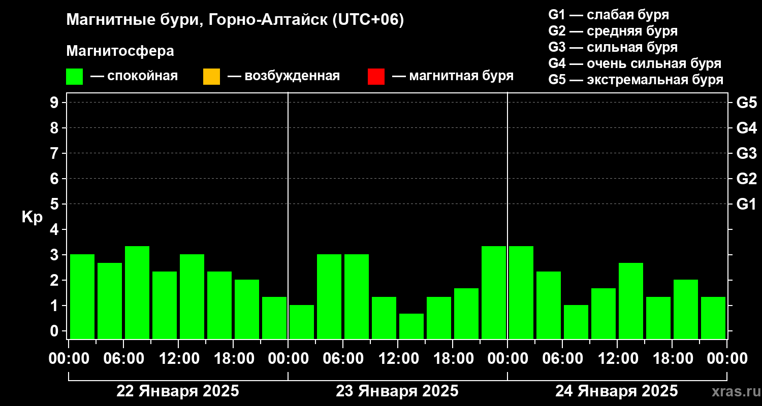 Магнитные бури в Горно-Алтайске — 24 января 2025 года