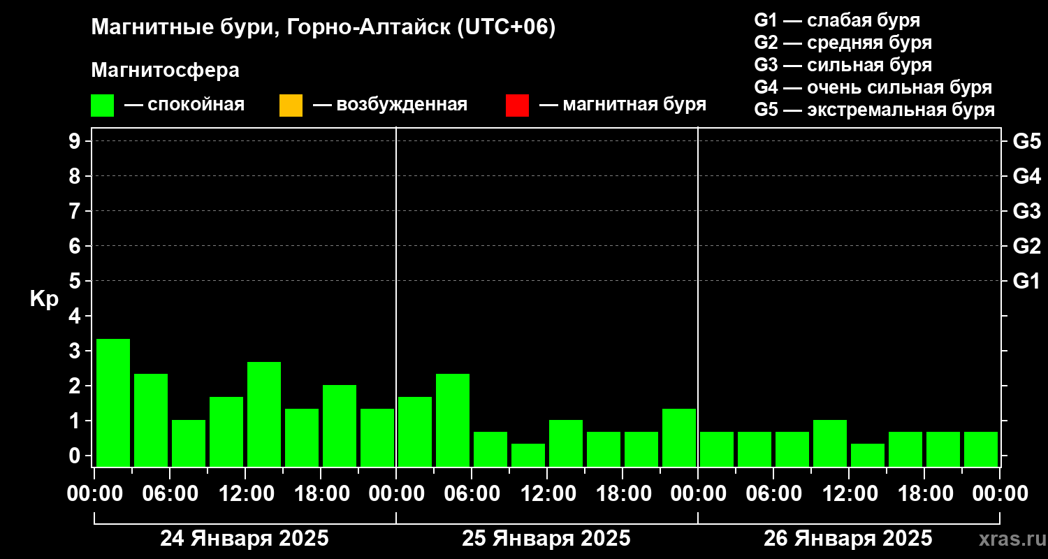 Магнитные бури в Горно-Алтайске — 26 января 2025 года