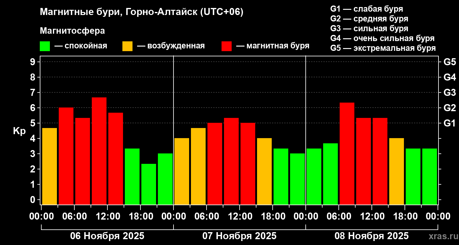Магнитные бури в Горно-Алтайске 8 ноября 2025 года