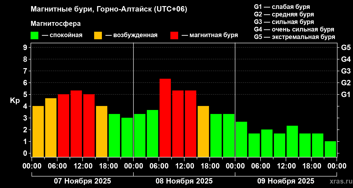 Магнитные бури в Горно-Алтайске — 9 ноября 2025 года