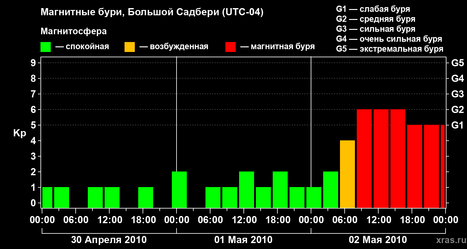 Магнитные бури Большом Садбери 2 мая 2010 года