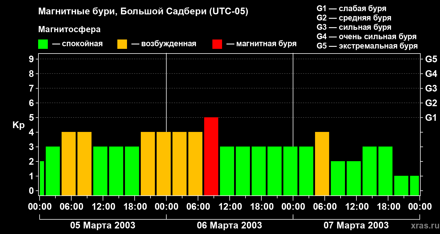 Магнитные бури Большом Садбери 7 марта 2003 года