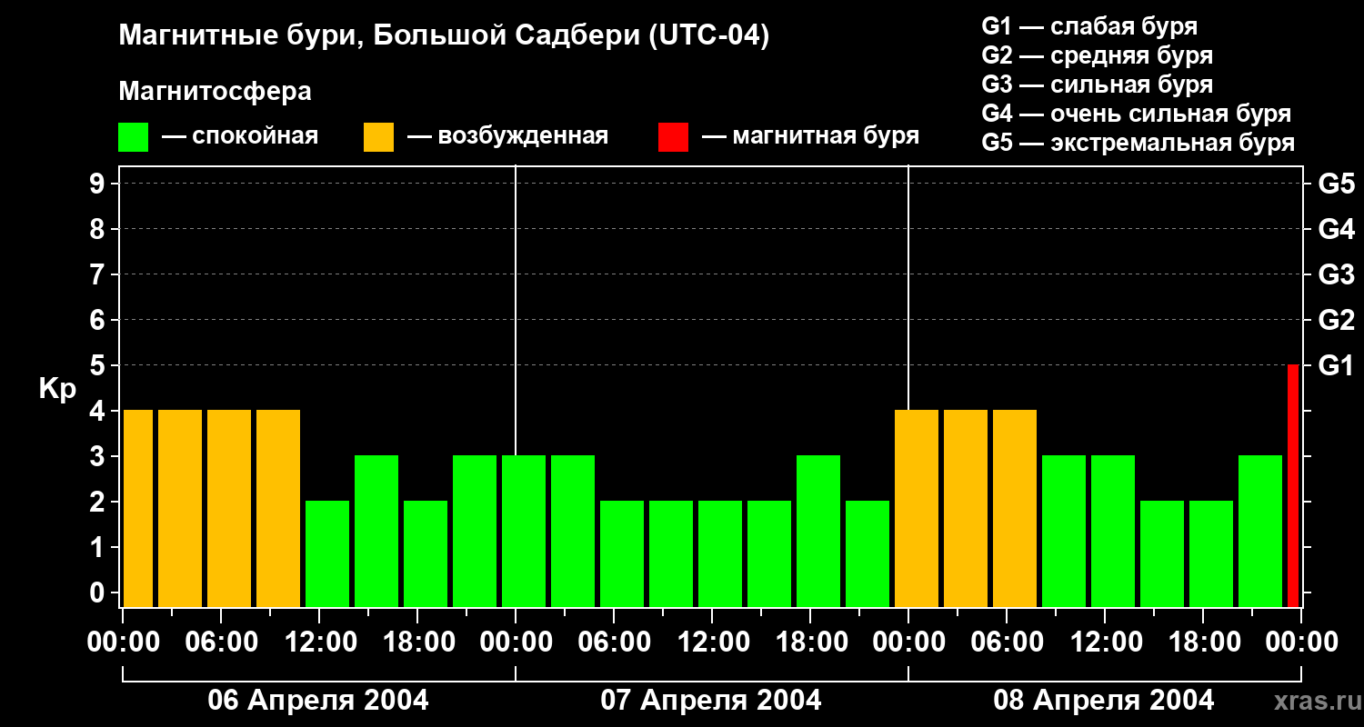 Магнитные бури Большом Садбери — 8 апреля 2004 года
