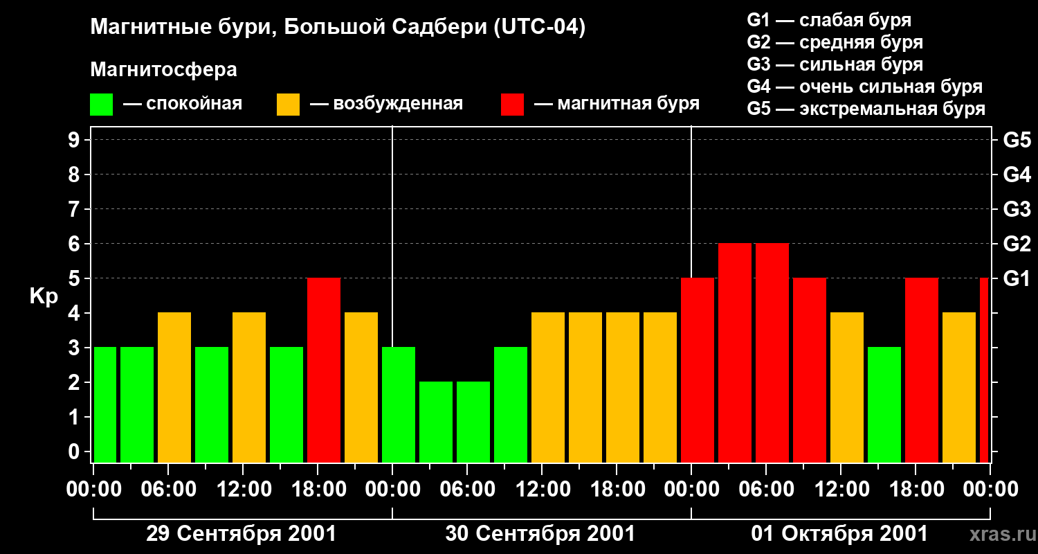 Магнитные бури Большом Садбери 1 октября 2001 года