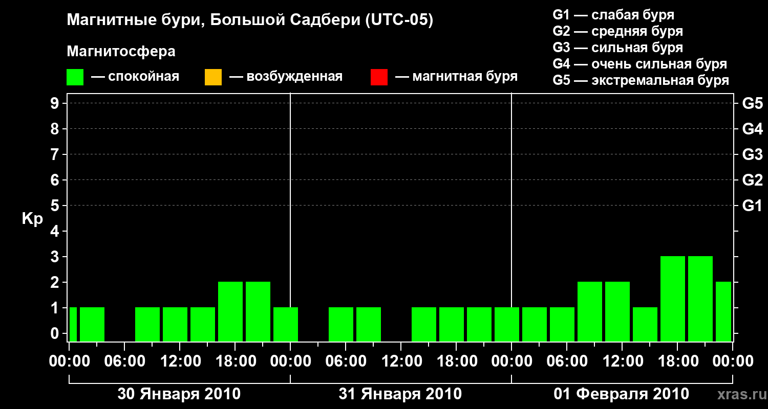 Магнитные бури Большом Садбери 1 февраля 2010 года