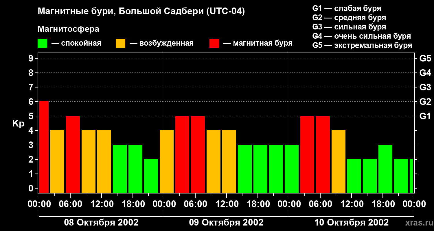 Магнитные бури Большом Садбери 10 октября 2002 года