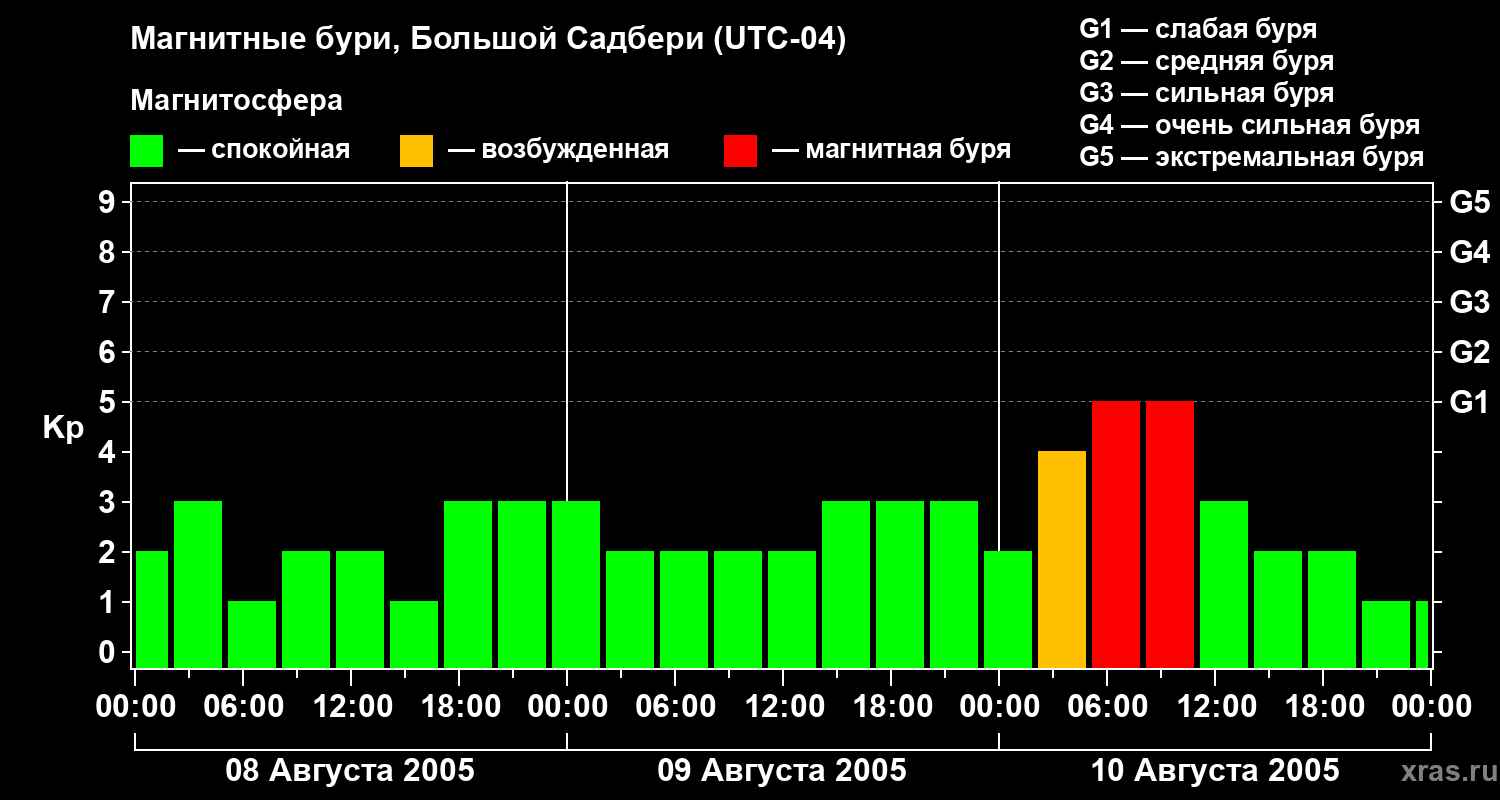 Магнитные бури Большом Садбери 10 августа 2005 года