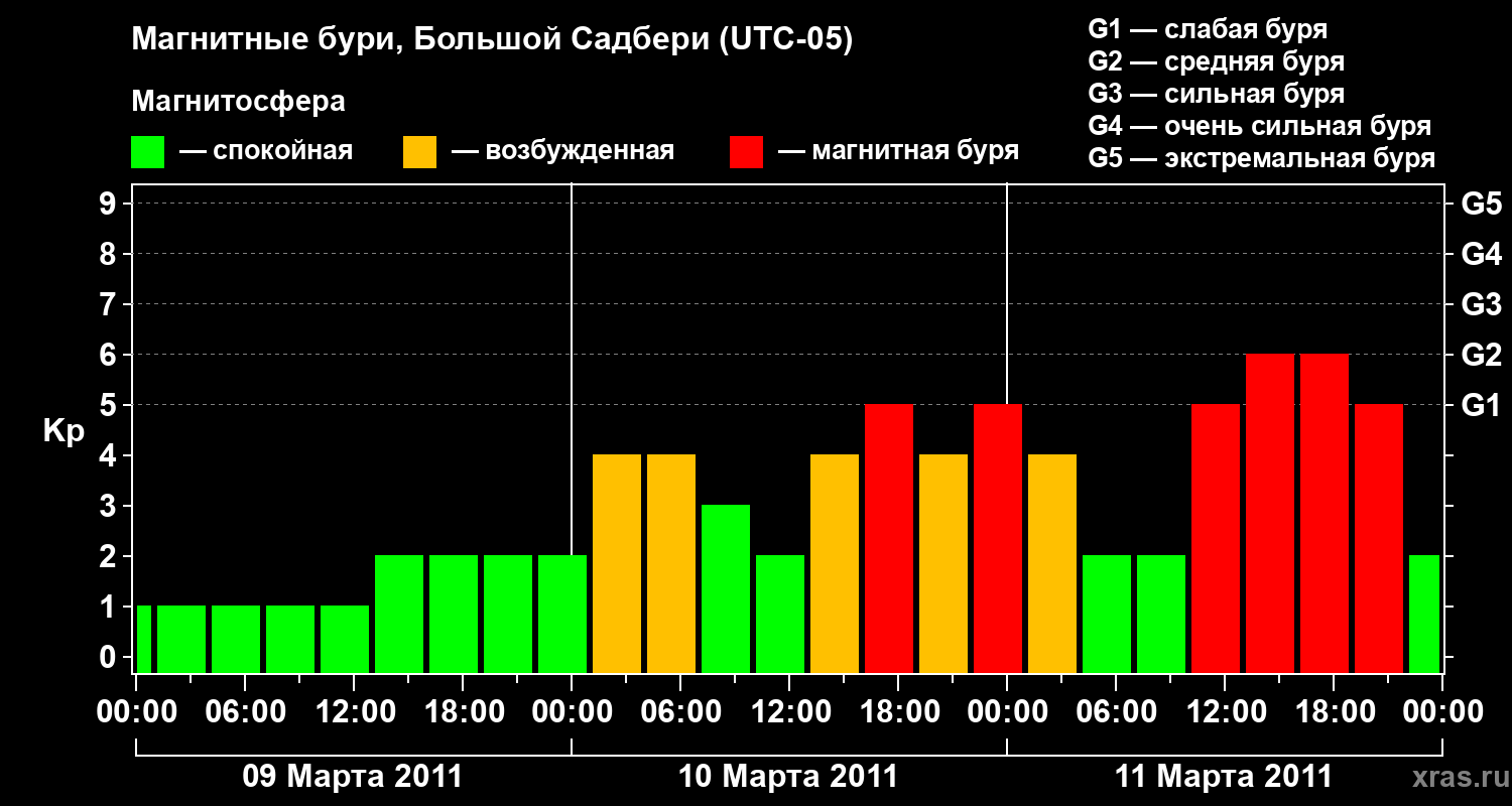 Магнитные бури Большом Садбери 11 марта 2011 года
