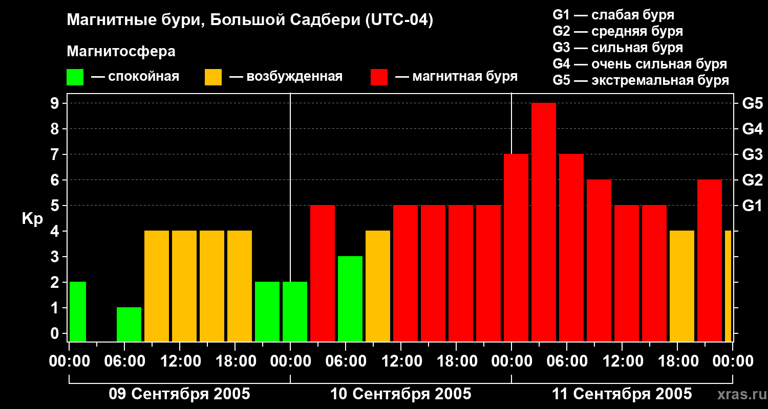 Магнитные бури Большом Садбери — 11 сентября 2005 года