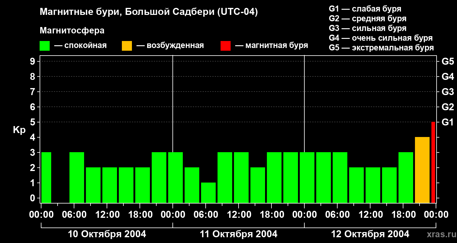 Магнитные бури Большом Садбери 12 октября 2004 года