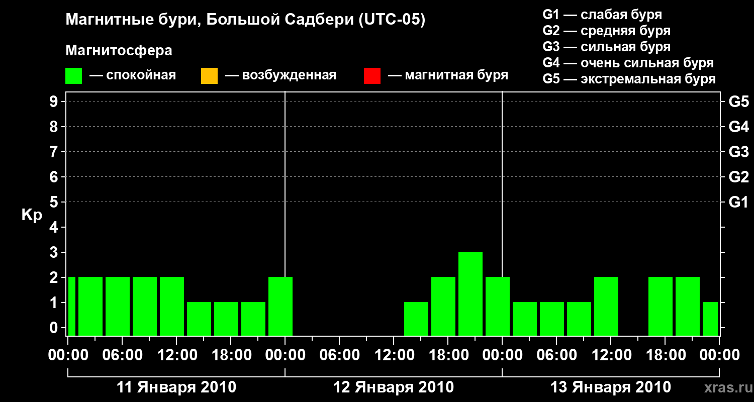 Магнитные бури Большом Садбери — 13 января 2010 года