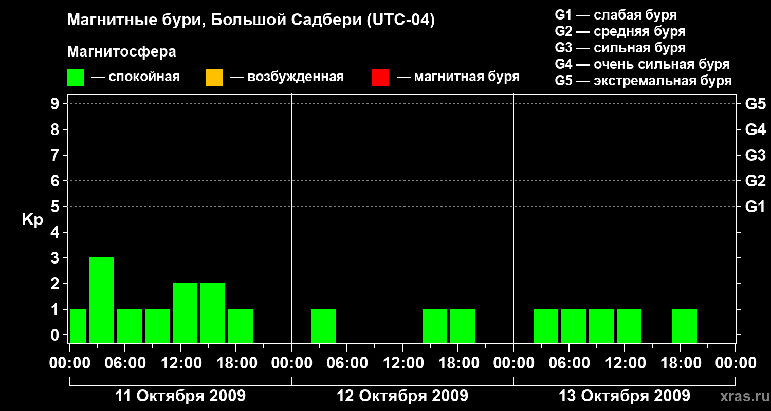Магнитные бури Большом Садбери 13 октября 2009 года