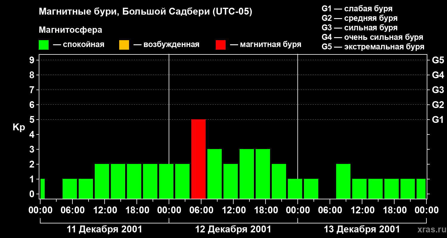 Магнитные бури Большом Садбери 13 декабря 2001 года