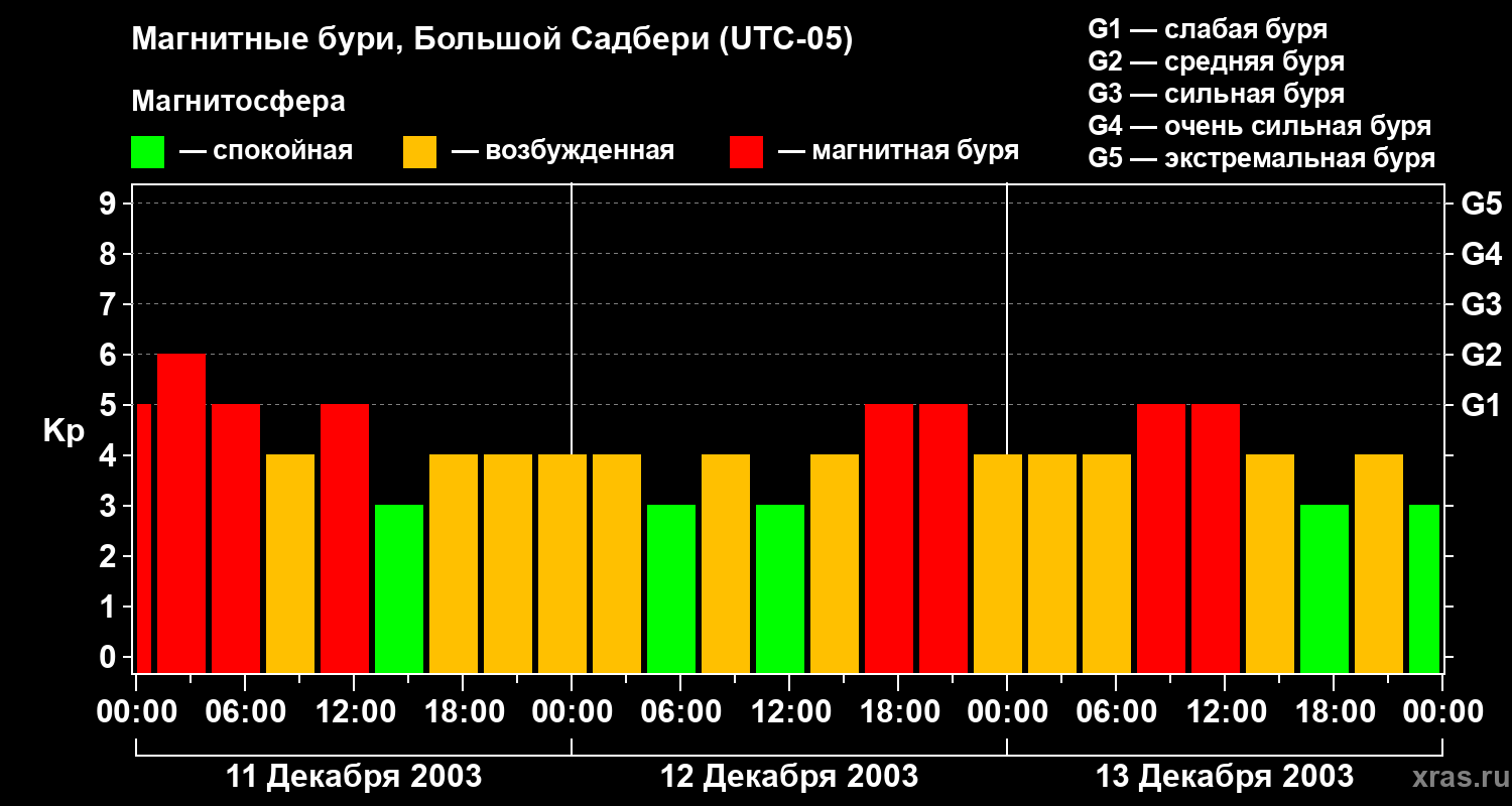 Магнитные бури Большом Садбери — 13 декабря 2003 года