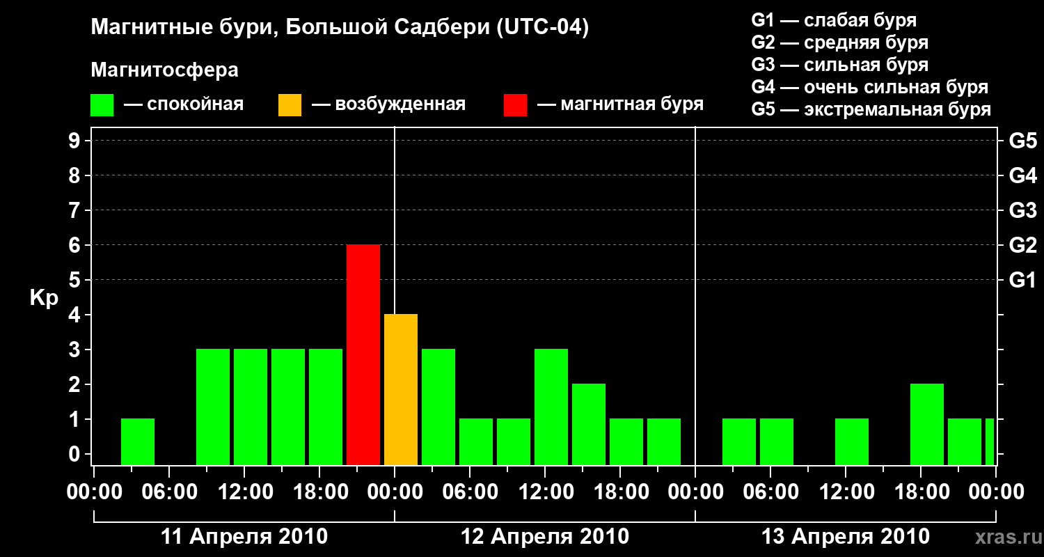 Магнитные бури Большом Садбери — 13 апреля 2010 года