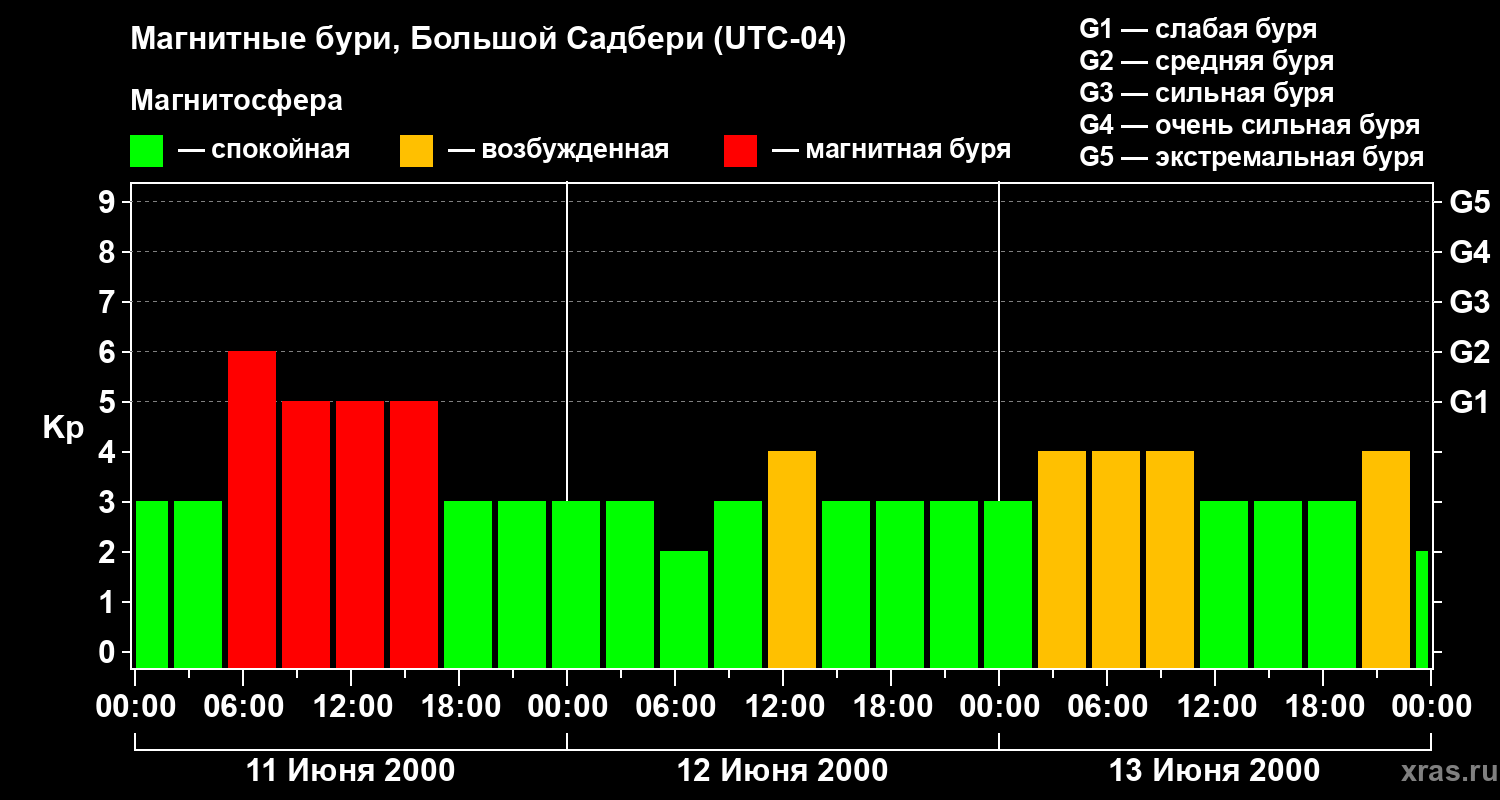 Магнитные бури Большом Садбери 13 июня 2000 года