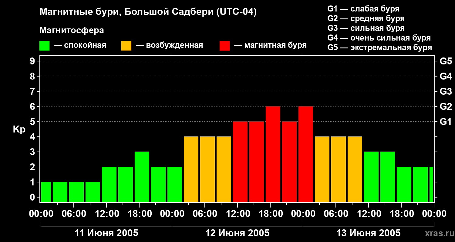Магнитные бури Большом Садбери 13 июня 2005 года