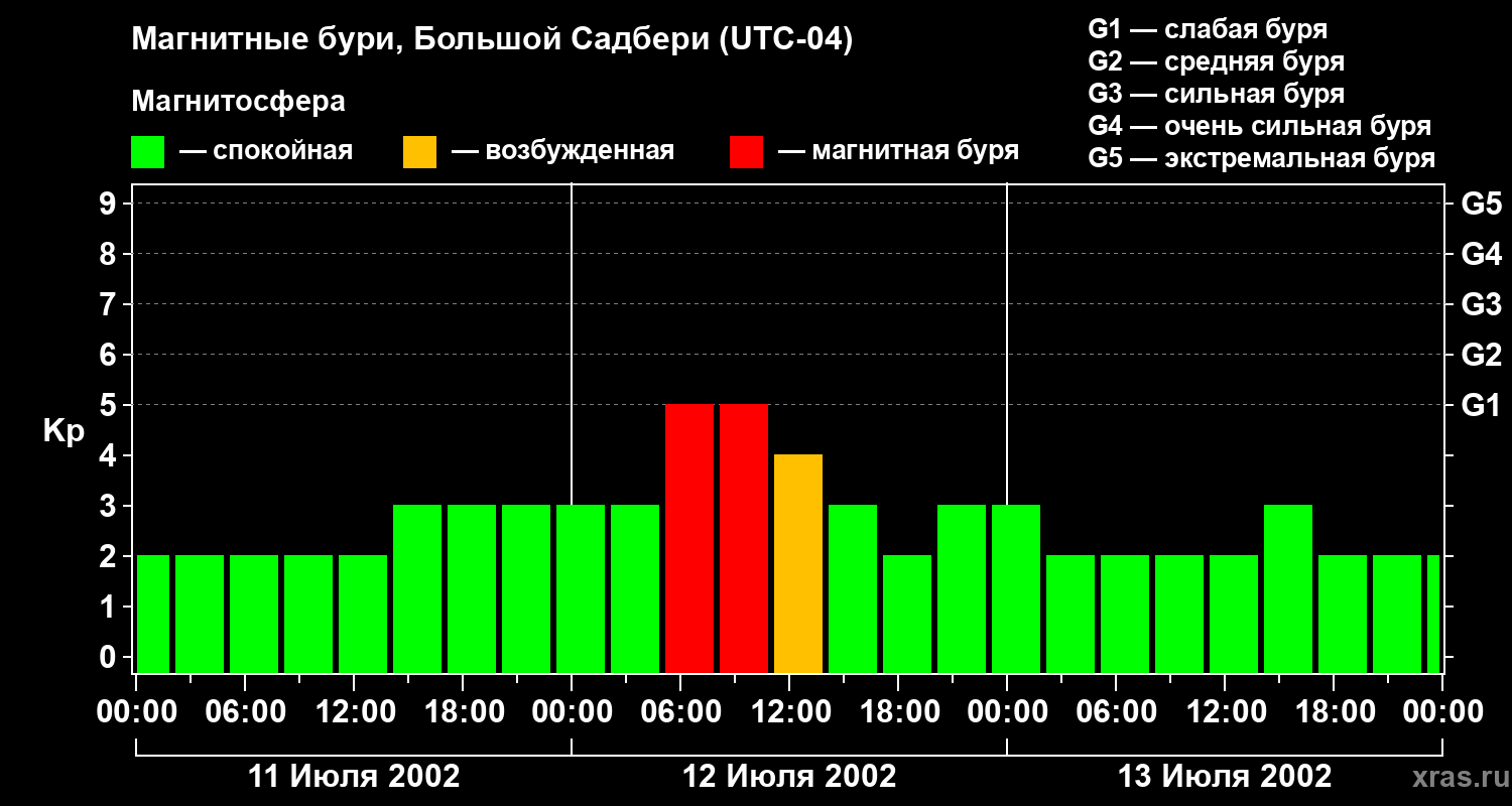 Магнитные бури Большом Садбери 13 июля 2002 года