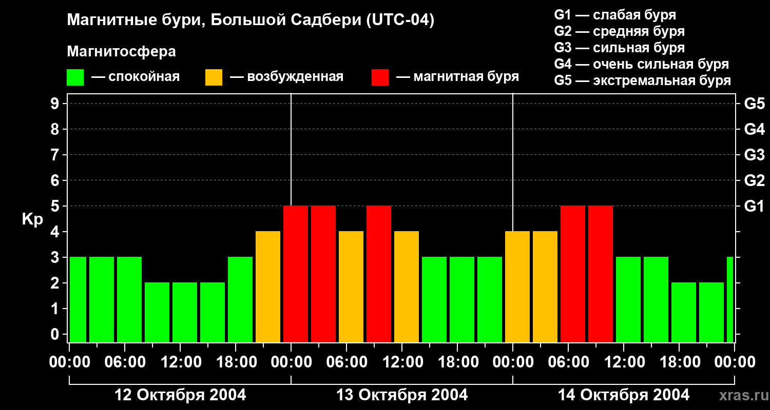 Магнитные бури Большом Садбери 14 октября 2004 года