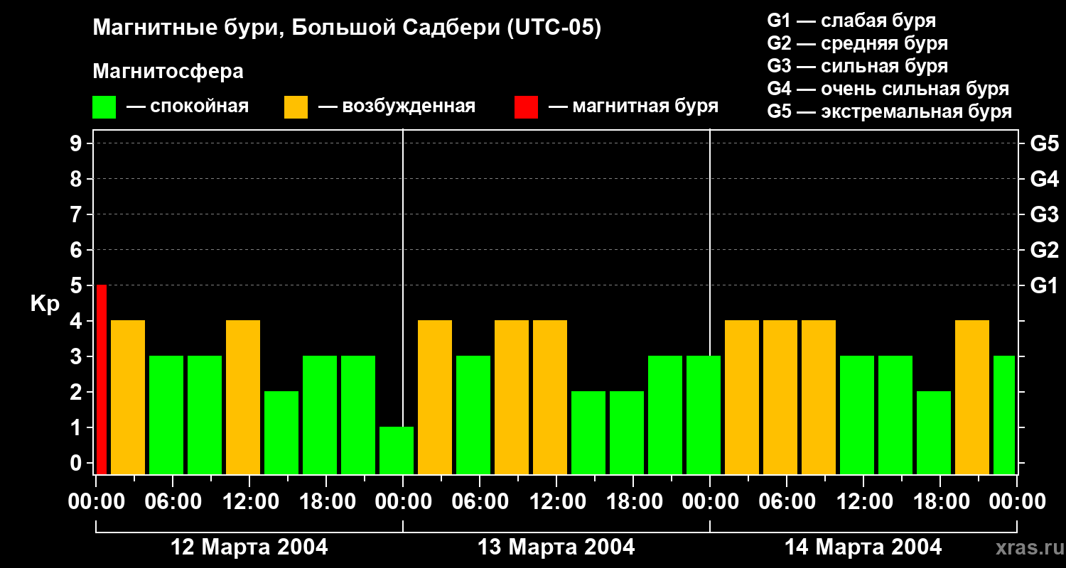 Магнитные бури Большом Садбери 14 марта 2004 года