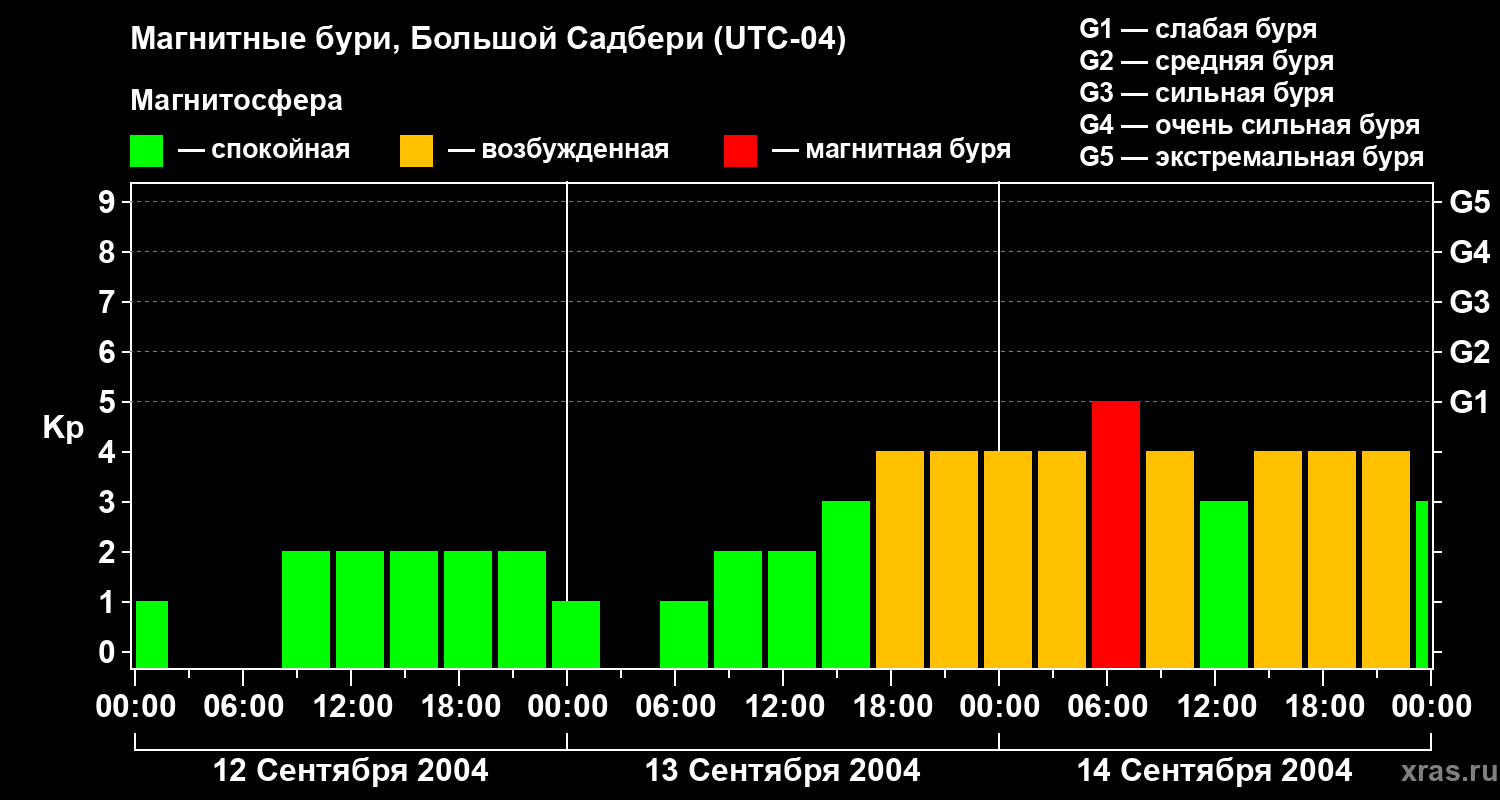 Магнитные бури Большом Садбери — 14 сентября 2004 года