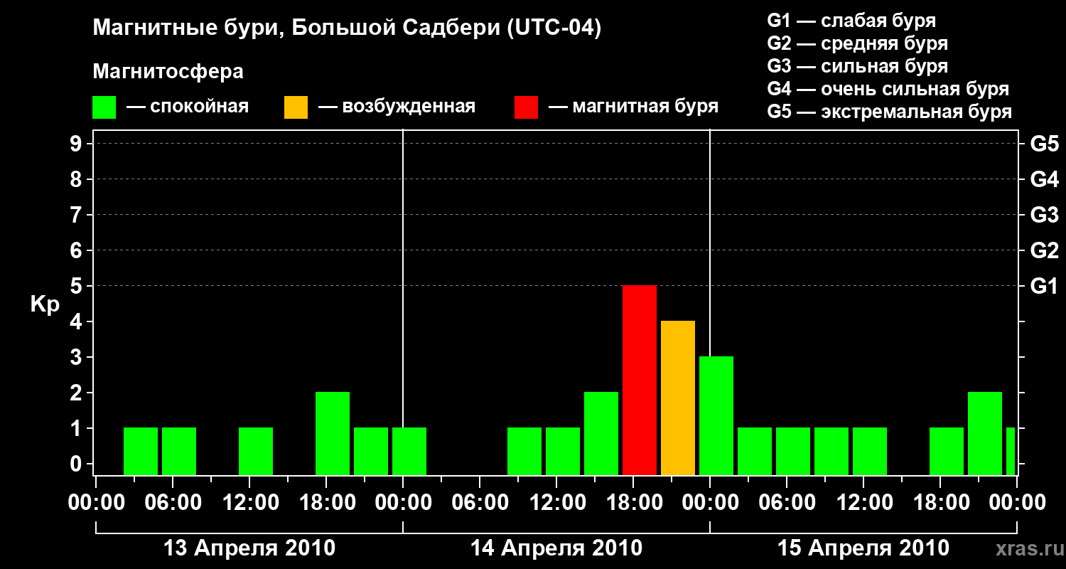 Магнитные бури Большом Садбери — 15 апреля 2010 года