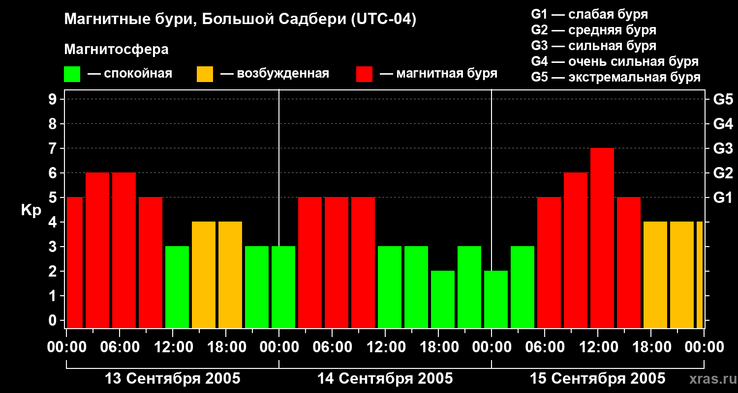 Магнитные бури Большом Садбери в сентябре 2005 года