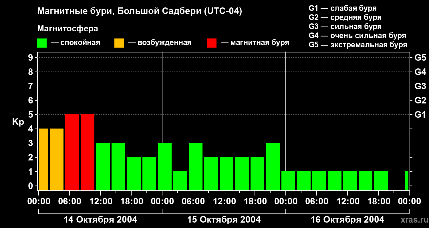 Магнитные бури Большом Садбери 16 октября 2004 года