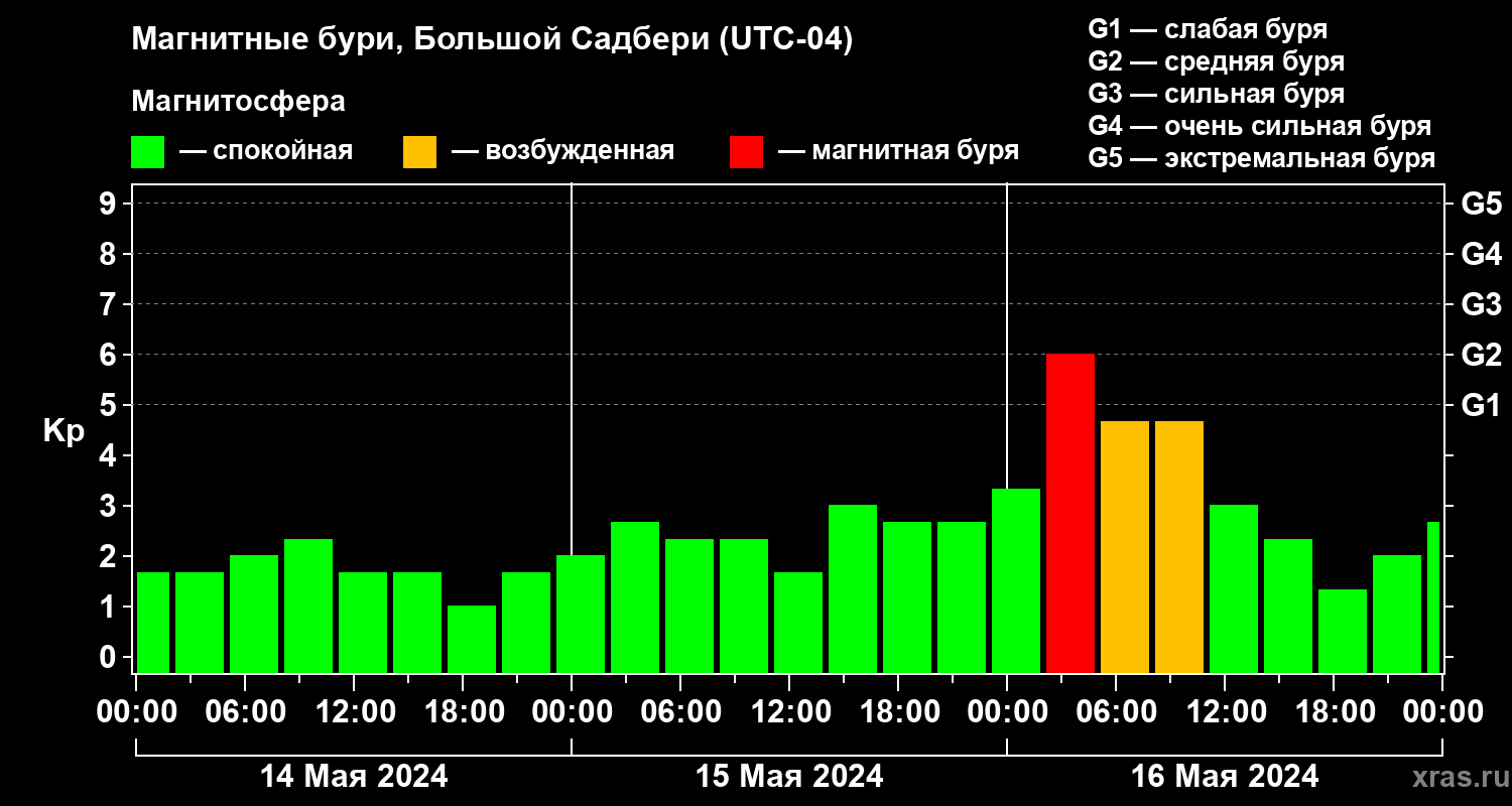Магнитные бури Большом Садбери — 16 мая 2024 года