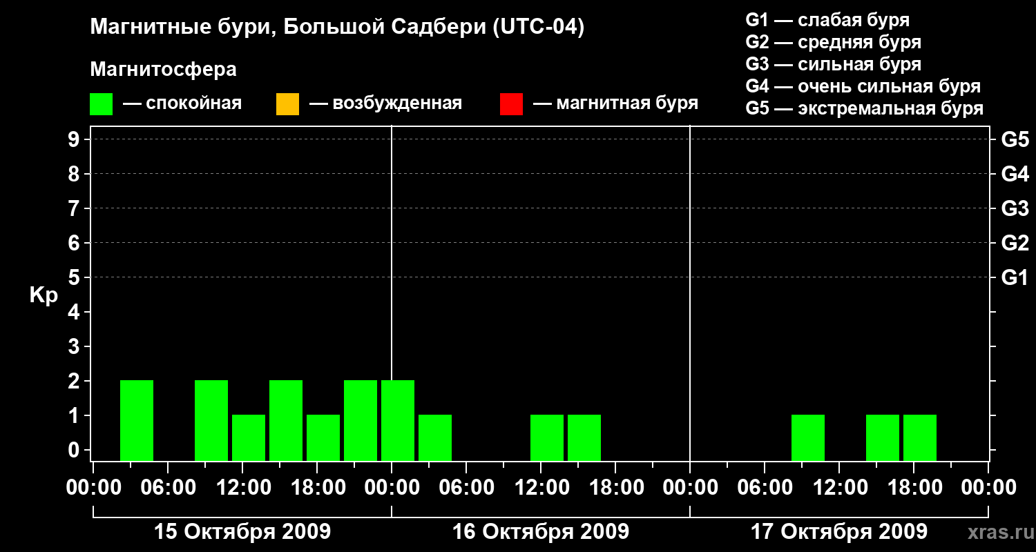 Магнитные бури Большом Садбери 17 октября 2009 года
